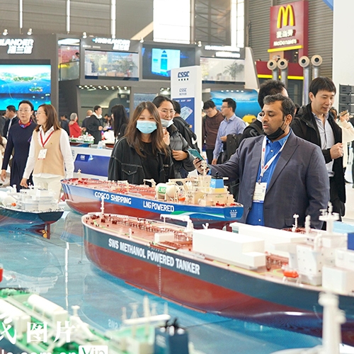 伴随着近年来,船市复苏趋势明显加速,全球海事业脱碳步伐加快,各大企业纷纷在本届会展上展示绿色低碳新船型、新技术等方面的储备。展会上,中远海运集团展示了国内首艘24188TEU甲醇双燃料动力大型集装箱船、 700TEU纯电池动力江海直达集装箱船、浮式生产储卸油装置(FPSO)、 自升式风电安装船以及系列数字化产品,相关展品和技术的全面展示将进一步推动航运业迈向绿色航运新时代。
